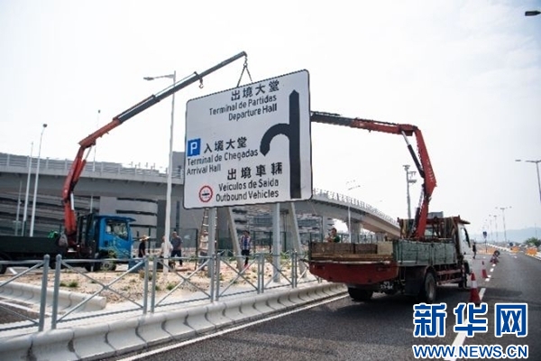 新華社澳門10月20日電(記者郭鑫 王晨曦)港珠澳大橋?qū)⒂诒驹?4日通車運(yùn)營,成為連接香港、澳門的新通道。記者19日驅(qū)車前往澳門口岸實(shí)地采訪,了解口岸內(nèi)部設(shè)置和準(zhǔn)備工作情況。