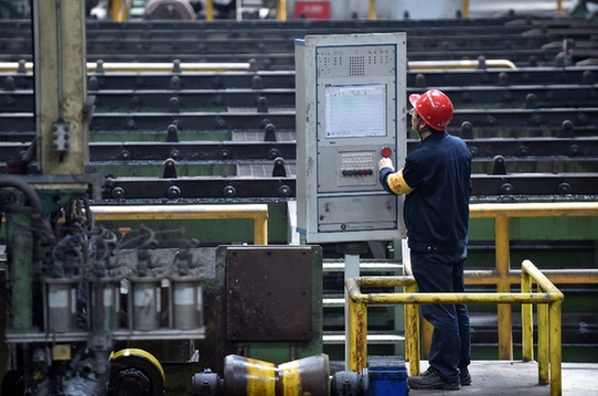 技術(shù)人員在天津鋼管集團(tuán)廠區(qū)操作儀器設(shè)備。記者 李然 攝