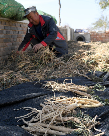 現(xiàn)在,右玉縣土壤肥力足,成了種藥材的好地方。村民張建平掰斷一截板藍(lán)根,指給記者看:“中間的芯是黃色的,上好的品相。收購公司的人說地里肥力足,才能種出好板藍(lán)根?!?/p>