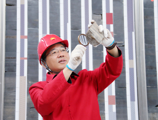 大港油田總經理趙賢正現場查看巖心樣本。資料照片