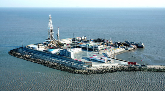 驅車從天津中心城區(qū)出發(fā)一路駛往東南方向的濱海新區(qū),經津港高速進入大港油田礦區(qū),馬路兩側或單獨安置或三兩成群的“磕頭機”——抽油機提醒著腳下這片沃土蘊含有豐富的原油。前往埕海2-2人工島的路途要更遠。從陸上開車過去還要經過一段數公里長的進海路。隆冬時節(jié),橋兩側一面是浮冰一面是海水,分外明顯。