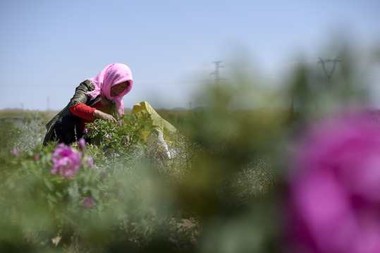 近年來,寧夏同心縣積極進行生態(tài)恢復建設,調整種植、養(yǎng)殖結構,環(huán)境得到明顯改善,用來制作茶飲的四季玫瑰得以在此生長。圖為同心縣石獅鎮(zhèn)滿春村村民在采摘四季玫瑰。新華社發(fā)(馮開華 攝)