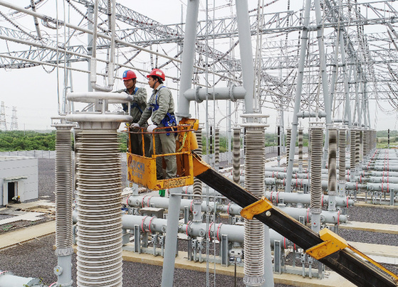 近日,在武漢市東湖高新區(qū)龍泉街,國(guó)網(wǎng)湖北送變電工程有限公司施工人員在檢查鳳凰山變電站設(shè)備。記者 肖藝九 攝
