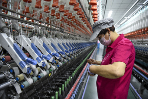 在位于固原市經(jīng)濟(jì)技術(shù)開(kāi)發(fā)區(qū)的寧夏豐源紡織廠,工人在機(jī)臺(tái)上忙碌。記者 馮開(kāi)華 攝