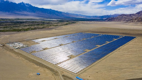 圖為由深圳援建的新疆塔什庫(kù)爾干塔吉克自治縣2萬千瓦集中式扶貧光伏電站。記者 胡虎虎 攝