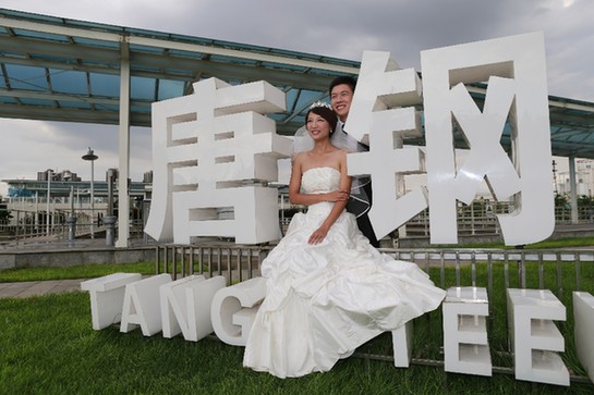 一對在河北鋼鐵集團唐山鋼鐵公司工作的新人在花園般的廠區(qū)拍攝結婚照。記者 任正來 攝