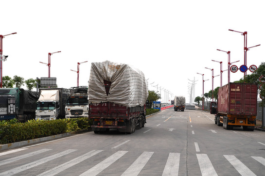中越雙方貨車在廣西東興口岸通行。記者 周華 攝