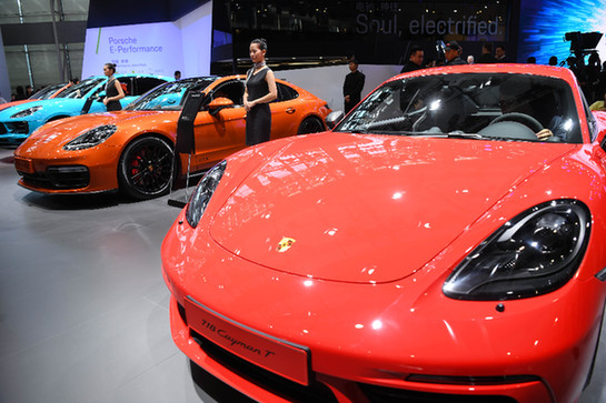 第十七屆廣州國際汽車展覽會上的保時捷汽車展區(qū)。記者 鄧華 攝