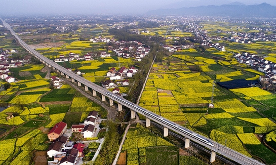 2019年6月,中國鐵路總公司改制成立的中國國家鐵路集團有限公司在北京掛牌,為推動鐵路高質(zhì)量發(fā)展提供了重要保障。中國鐵路涌動著改革創(chuàng)新的澎湃熱情,圖為一列動車正通過漢中市南鄭縣新集鎮(zhèn)油菜花海(無人機拍攝)。記者 陶明 攝