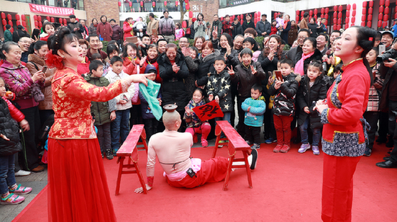 近年來,瀘州市江陽區(qū)為大力弘揚(yáng)社會主義核心價(jià)值觀,鞏固全國文明城市成果,不斷豐富社區(qū)黨員群眾的精神文化生活。圖為在江陽區(qū)張壩景區(qū)開展“三下鄉(xiāng)”文藝活動。