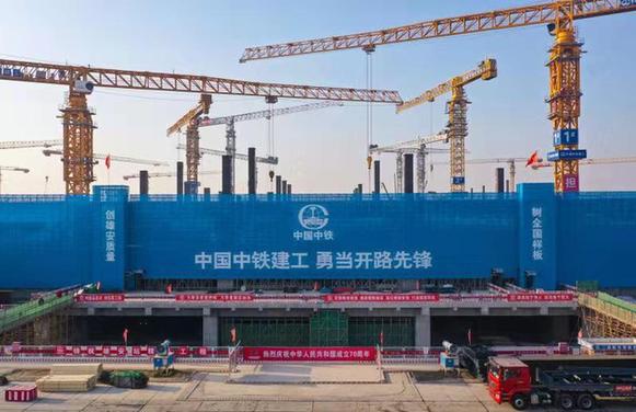 京雄城際鐵路雄安站施工現(xiàn)場。中鐵建工集團(tuán)供圖