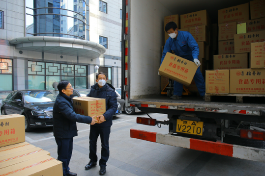 圖片說明:北京稻香村向一線醫(yī)護人員捐贈一萬盒“京八件”糕點