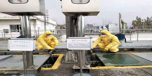 成都環(huán)境投資集團有限公司一線員工在生化池進行點檢及過程采樣