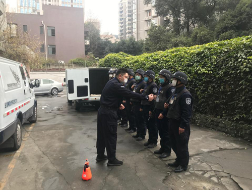 中融安保集團有限責任公司翼虎押運大隊出發(fā)前進行消毒準備
