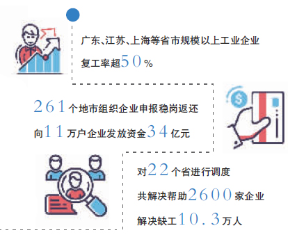 自上周起,全國各地復(fù)工復(fù)產(chǎn)陸續(xù)展開。當(dāng)前,企業(yè)、個人還面臨一系列用工、失業(yè)保障等方面的挑戰(zhàn),在國務(wù)院聯(lián)防聯(lián)控機(jī)制2月19日召開的新聞發(fā)布會上,人社部失業(yè)保險司司長桂楨透露,在支持企業(yè)復(fù)工復(fù)產(chǎn)、渡過難關(guān)方面,人社部已會同財政部出臺新舉措,加大支持力度,擴(kuò)大中小微企業(yè)政策受益面,降低政策門檻,放寬申領(lǐng)條件。同日,工信部辦公廳發(fā)出的通知要求,運用新一代信息技術(shù)加快企業(yè)復(fù)工復(fù)產(chǎn)。支持互聯(lián)網(wǎng)交通、物流、快遞等生產(chǎn)性服務(wù)企業(yè)率先復(fù)工復(fù)產(chǎn)。