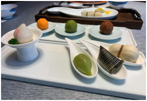 網(wǎng)友最“饞”的還是“一點(diǎn)宴天下”里的點(diǎn)心,包括為2018年首屆進(jìn)博會(huì)歡迎晚宴研發(fā)的“荷韻套點(diǎn)”,為2014年亞信峰會(huì)期間各國(guó)第一夫人定制的“夫人套點(diǎn)”。每套點(diǎn)心里包含多種花樣:有狀似蓮藕、每節(jié)一個(gè)味道的酥點(diǎn),做成錦鯉樣子的鱖魚(yú)餃子,寓意長(zhǎng)享福壽的夾心壽桃……個(gè)個(gè)小巧別致,形狀逼真,美的像一幅畫(huà),海派風(fēng)格十足。“精致到骨髓”的點(diǎn)心讓主播遲遲不忍下口,在網(wǎng)友再三催促下,才舍得一個(gè)一個(gè)吃下,分享口口驚喜,網(wǎng)友隔屏直呼“舒服了”。