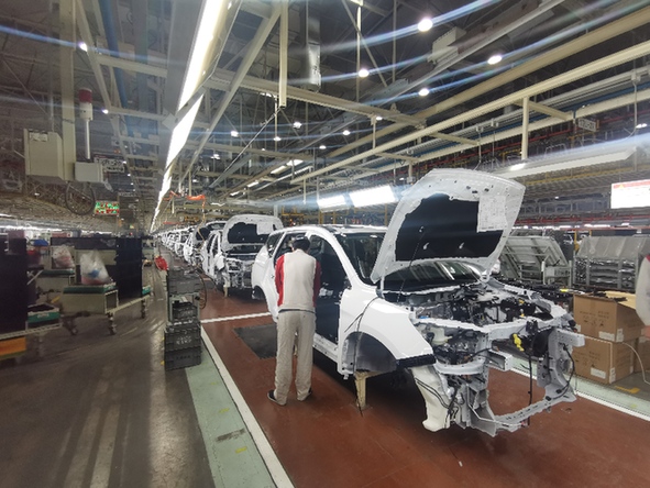 長(zhǎng)城汽車天津總裝二車間內(nèi),工人在生產(chǎn)線上忙碌。