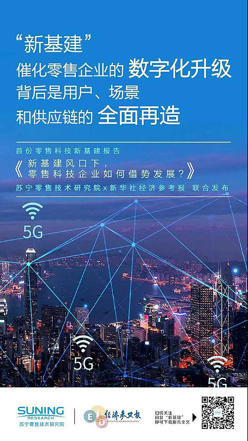 “發(fā)展‘新基建’是未雨綢繆,得數(shù)字化者得先機(jī)?!薄缎禄L(fēng)口下:零售科技企業(yè)如何借勢發(fā)展?》通過聯(lián)合江蘇省互聯(lián)網(wǎng)協(xié)會、亞太智慧零售產(chǎn)業(yè)聯(lián)盟等權(quán)威行業(yè)組織,蘇寧、科大訊飛、中興通訊等企業(yè),及業(yè)內(nèi)專家的深度調(diào)研,挖掘了“新基建”在數(shù)字經(jīng)濟(jì)中的內(nèi)核作用,也為零售行業(yè)在新經(jīng)濟(jì)形勢下?lián)屨紨?shù)字化先機(jī)指引了方向。