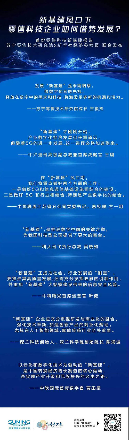 正如知名經(jīng)濟(jì)學(xué)家任澤平所說,“新基建”大幕已然開啟,后面的關(guān)鍵是實(shí)施,這離不開改革創(chuàng)新的模式,而這正是蘇寧發(fā)布這份深度調(diào)研報(bào)告的初衷:為整個(gè)零售行業(yè)數(shù)字化轉(zhuǎn)型提供重要參考的同時(shí),引領(lǐng)行業(yè)企業(yè)不斷提升數(shù)字化能力,推動零售全鏈條、全產(chǎn)業(yè)數(shù)字化升級,開啟“新基建”的“新機(jī)遇”。?