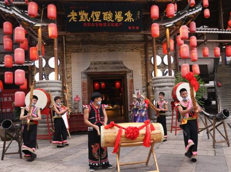 直播活動尾聲,主持人和在場所有嘉賓還現(xiàn)場體驗(yàn)了一把“高山流水”?!案呱搅魉笔敲缂胰苏写F客的最高禮遇之一,當(dāng)客人在喝碗中酒的時(shí)候,多名苗家姑娘小伙分站在客人身側(cè),分別將酒罐呈階梯狀往客人酒碗里加酒,這樣就像高山上流下泉水一樣,源源不斷的甘甜米酒流進(jìn)客人口中。網(wǎng)友紛紛直呼:“太有特色了,好想去體驗(yàn)!”。