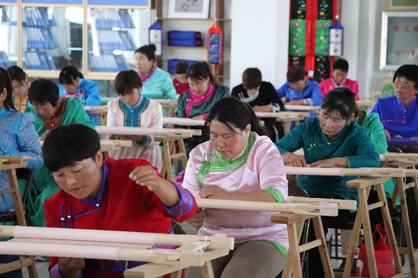 興安盟科右中旗刺繡扶貧車間里,包括貧困人口在內(nèi)的農(nóng)牧民婦女們?cè)谶M(jìn)行刺繡創(chuàng)作??朴抑衅鞂⒋汤C打造為扶貧產(chǎn)業(yè),目前參與人數(shù)超過(guò)2萬(wàn)人,其中貧困人口約3000人,貧困人口年均增收超2000元。 記者 王靖 攝