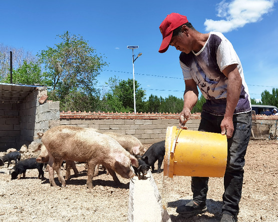 扎賚特旗脫貧戶包哈敦巴拉在喂豬,經(jīng)過(guò)精準(zhǔn)扶貧,他已成了村里的養(yǎng)豬大戶。2019年,通過(guò)勤奮養(yǎng)豬、護(hù)林,他的年收入超過(guò)15000元。記者 任軍川 攝