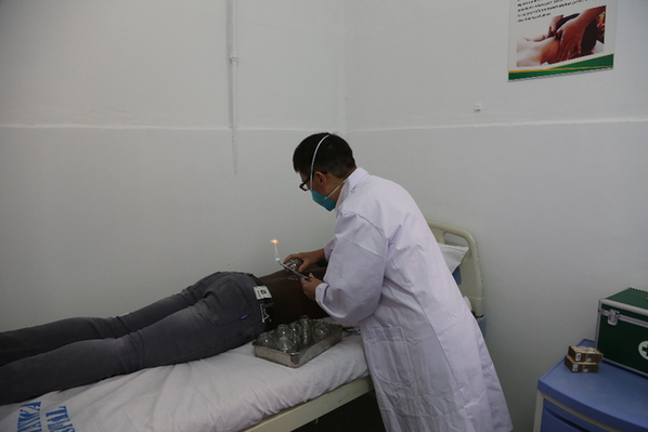 津巴布韋首家中醫(yī)針灸中心近日在津最大的公立醫(yī)院帕里雷尼亞圖瓦醫(yī)院正式揭牌運營。在津巴布韋首都哈拉雷的中醫(yī)針灸中心,中心牽頭人、第17批中國(湖南)援津巴布韋醫(yī)療隊隊長江志超(右)為患者做拔火罐治療。據(jù)悉,該中心將由中津雙方共同管理運營,現(xiàn)有1名中國中醫(yī)專家、2名理療師、3名治療師,開設了中醫(yī)診療室、針灸艾灸治療室、推拿理療室、特色技術培訓室等科室,通過針灸、艾灸、火罐等中醫(yī)藥特色技術,為當?shù)孛癖娞峁└咚降脑\療服務,同時為津巴布韋公立醫(yī)院的醫(yī)護人員進行中醫(yī)理論和實踐培訓等。