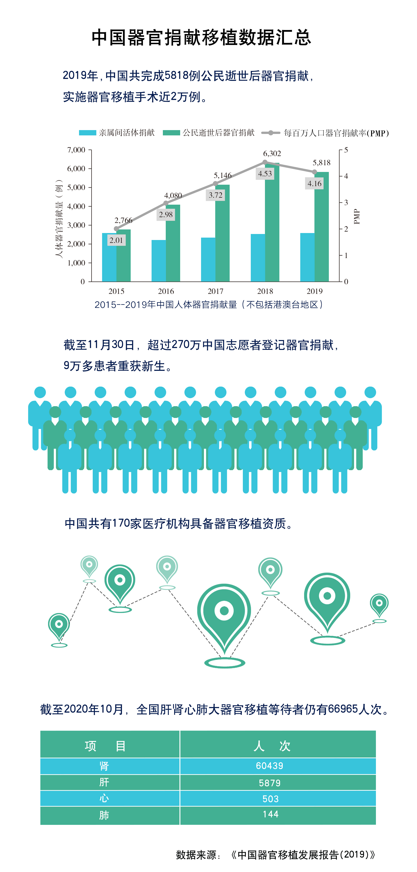 ——進(jìn)一步拓寬器官捐獻(xiàn)來(lái)源滿足移植需求。“中國(guó)器官捐獻(xiàn)數(shù)量和捐獻(xiàn)率雖逐年增長(zhǎng),但與國(guó)內(nèi)患者的巨大需求相比相距甚遠(yuǎn)?!蓖鹾2ㄕf(shuō),截至2020年10月,全國(guó)仍有60439人次等待腎移植、5879人次等待肝移植、503人次等待心移植、144人次等待肺移植。