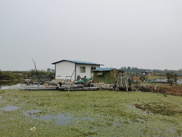 在蘇魯兩省交界處的湖區(qū),不少人以船為家,有的生活垃圾也被扔進水中,有的居住區(qū)附近的湖面浮萍密布,污濁不堪。(記者 邵琨 攝)