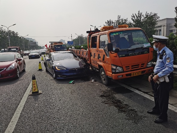 2020年7月29日,北京南四環(huán)特斯拉“自動駕駛”發(fā)生的一起交通事故現(xiàn)場。(圖片由車主焦女士提供)