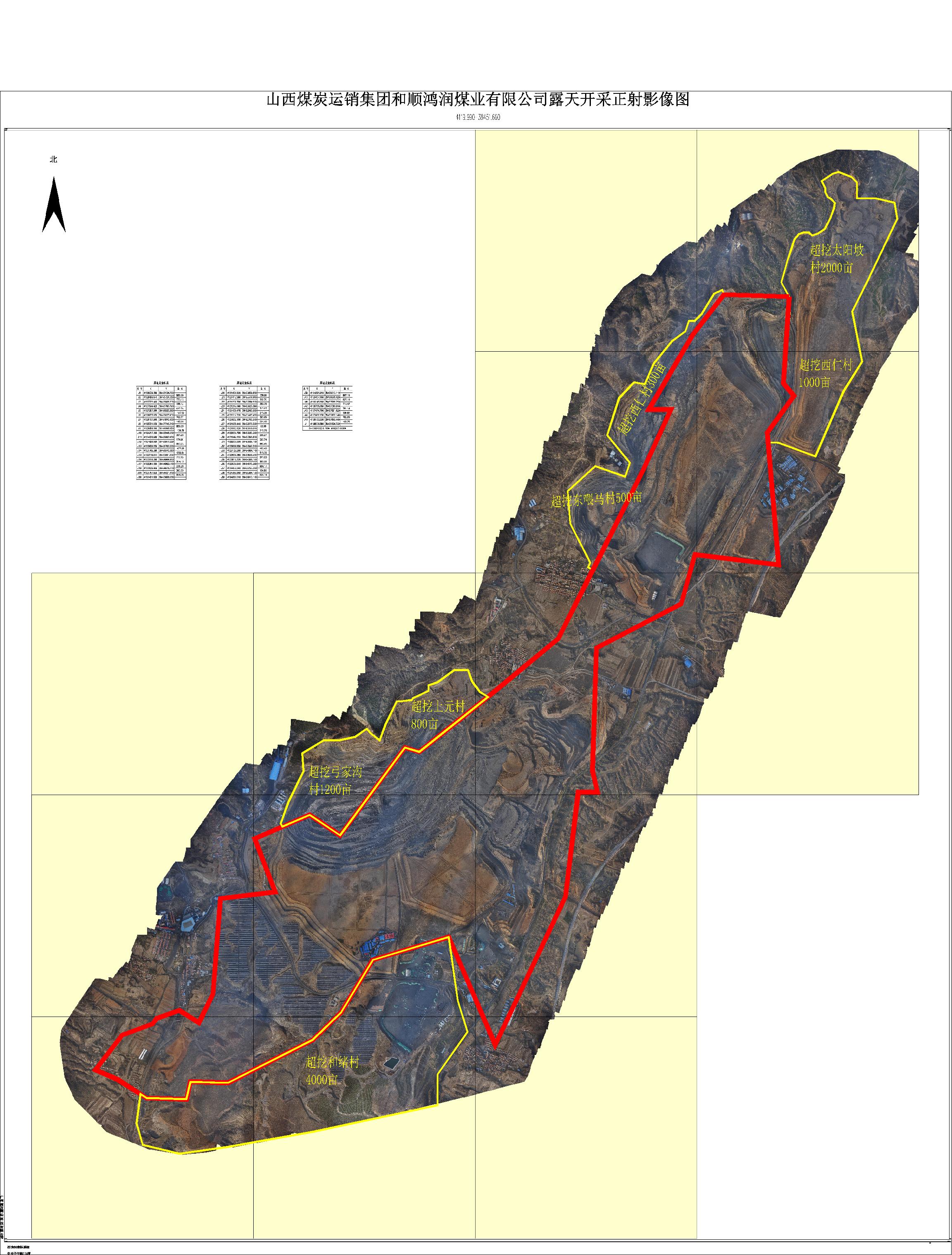 有知情人士披露,該礦區(qū)存在嚴(yán)重越界非法開采行為。一家甲級資質(zhì)的測繪單位提供的該礦區(qū)露天開采正射影像圖顯示,該礦區(qū)越界范圍為河緒村4000畝、弓家溝村1200畝、上元村800畝、東喂馬村500畝、西仁村1300畝、太陽坡村2000畝,共計9800畝。