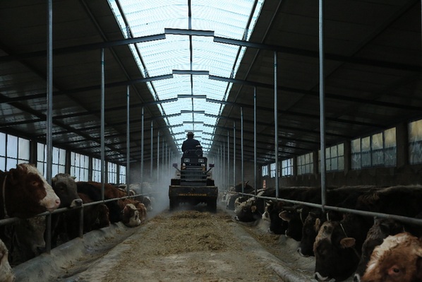 固原市原州區(qū)張易鎮(zhèn)閆關(guān)村村民王占有正在牛棚里喂牛。