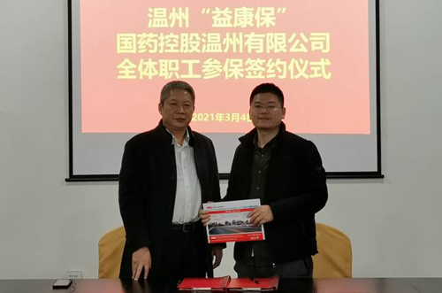 圖為國(guó)藥控股溫州有限公司簽出“溫州益康保”團(tuán)單首單。(攝影:朱斌)