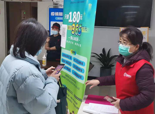 為群眾宣傳辦理“益康?!北kU(xiǎn)。(攝影:婁明遠(yuǎn))
