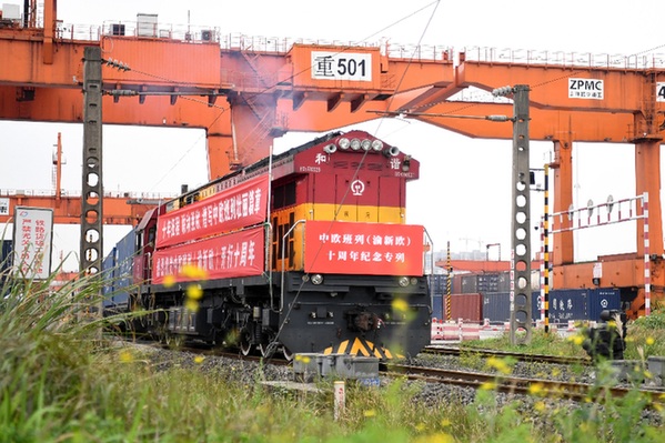 3月19日,一趟滿載著電子產(chǎn)品、機(jī)械零件、日用百貨等物品的中歐班列(渝新歐)十周年紀(jì)念專列徐徐駛出重慶團(tuán)結(jié)村車站,發(fā)往德國杜伊斯堡。