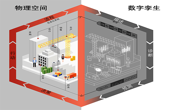 數(shù)字孿生是以特定目的為導(dǎo)向?qū)ξ锢硎澜绗F(xiàn)實(shí)對(duì)象的數(shù)字化表達(dá)。這一對(duì)象不僅包括產(chǎn)品、設(shè)備、建筑物等“實(shí)物”對(duì)象,也包括企業(yè)組織、城市等“實(shí)體”對(duì)象。通過(guò)對(duì)物理對(duì)象構(gòu)建數(shù)字孿生模型,實(shí)現(xiàn)物理對(duì)象和數(shù)字孿生模型的雙向映射。對(duì)于不同現(xiàn)實(shí)對(duì)象,其數(shù)字孿生模型構(gòu)建的側(cè)重點(diǎn)和用途不盡相同,要實(shí)現(xiàn)企業(yè)的數(shù)字化管理,需要構(gòu)建以整個(gè)企業(yè)組織體為對(duì)象的數(shù)字孿生,更強(qiáng)調(diào)對(duì)廣域數(shù)據(jù)的聚合融通,著力于通過(guò)模擬仿真來(lái)優(yōu)化全局決策和加強(qiáng)協(xié)同??梢哉f(shuō),企業(yè)級(jí)數(shù)字孿生是數(shù)字化管理應(yīng)用推廣的基礎(chǔ),是其智能化過(guò)程的載體。