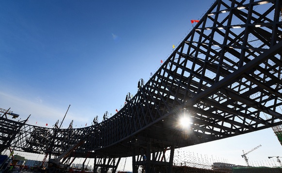 中國建筑施工人員在深??萍紕?chuàng)新公共平臺項(xiàng)目工地上作業(yè)。 記者 楊冠宇 攝