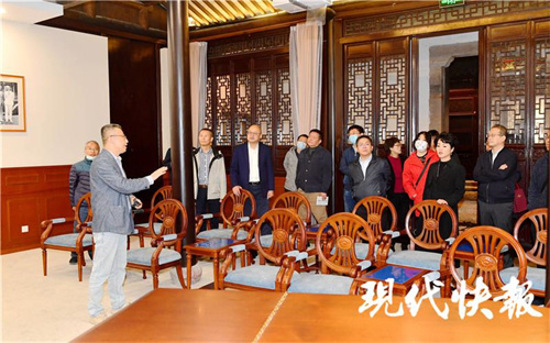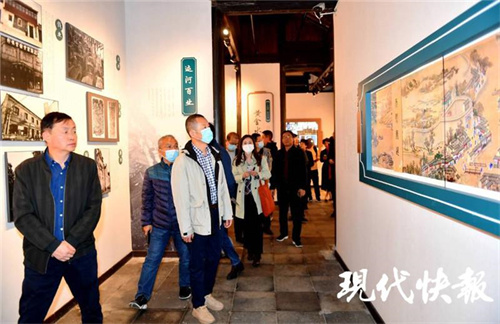 在青果巷文化記憶館,采訪(fǎng)團(tuán)成員們饒有興趣地觀看著動(dòng)態(tài)《康熙南巡圖》和青果巷歷史回顧 AR 短片。這些展覽,以聲光元素為媒,生動(dòng)地再現(xiàn)了古常州的繁華景象和青果巷九巷八宅的老故事。