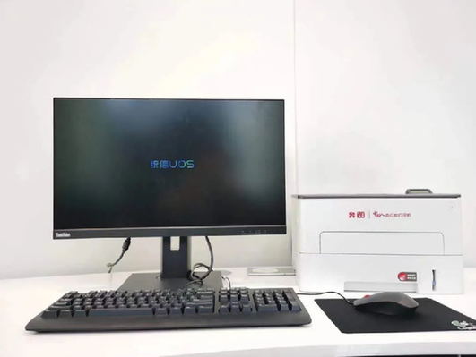 統(tǒng)信的系統(tǒng)、京東方的顯示屏、奔圖的打印機(jī)……在工行北京信創(chuàng)園支行內(nèi),從生產(chǎn)終端到辦公電腦,再到自助機(jī)具,大量使用國產(chǎn)設(shè)備。據(jù)介紹,該網(wǎng)點(diǎn)內(nèi)搭建了以統(tǒng)信UOS“中國系統(tǒng)”為平臺(tái),綜合運(yùn)用龍芯、飛騰 、兆芯等“中國芯”的國產(chǎn)化智能應(yīng)用新生態(tài)場(chǎng)景:從“前臺(tái)PC”到“智能終端”、從“普惠金融”到“政務(wù)一體”、從“消保服務(wù)”到“鄉(xiāng)村振興”、從“生命周期墻”到“企業(yè)主題日”,實(shí)現(xiàn)了國產(chǎn)品牌在金融科技領(lǐng)域的全部替代。
