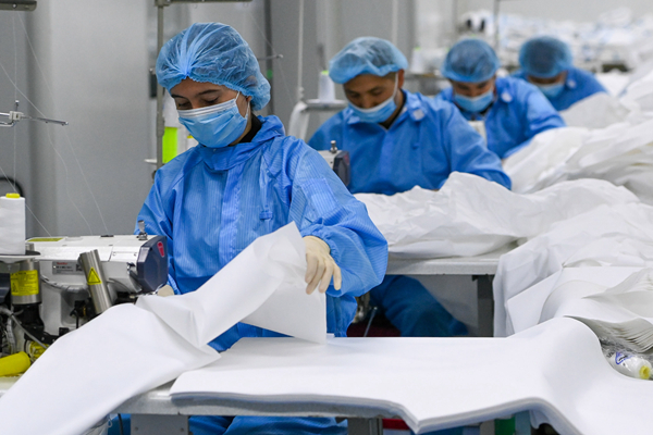11日,在新疆墨玉縣產(chǎn)城融合園,新疆霸麗穆醫(yī)療器械有限公司的員工在生產(chǎn)防護(hù)服。地處塔克拉瑪干沙漠邊緣的新疆墨玉縣人均耕地少,產(chǎn)業(yè)基礎(chǔ)薄弱。近年來,墨玉縣堅(jiān)持把招商引資作為產(chǎn)業(yè)發(fā)展的助推器,不斷優(yōu)化產(chǎn)業(yè)結(jié)構(gòu),積極構(gòu)建符合本地實(shí)際的現(xiàn)代產(chǎn)業(yè)體系,打造以襪業(yè)全產(chǎn)業(yè)鏈、電子全產(chǎn)業(yè)鏈為主的產(chǎn)城融合園,有效促進(jìn)當(dāng)?shù)亟?jīng)濟(jì)發(fā)展,群眾增收致富。截至目前,墨玉縣產(chǎn)城融合園已入駐企業(yè)17家,涵蓋襪業(yè)、電子設(shè)備、服裝、鞋業(yè)、黃金加工等產(chǎn)業(yè),帶動(dòng)就業(yè)超過3000人。