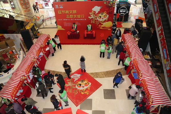 除此之外,現(xiàn)場還設(shè)有“我們的節(jié)日”、拒絕餐飲浪費等多處宣傳集點打卡處,開展了猜燈謎、剪紙、寫春聯(lián)、編織等中國傳統(tǒng)節(jié)日文化活動,集齊點數(shù)即可當(dāng)場兌換新春小禮品,讓廣大市民群眾感受到濃濃的節(jié)日氣氛。