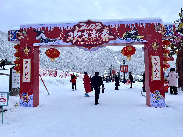 西嶺雪山滑雪場的虎年新春布景(2月4日攝)。