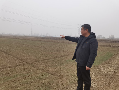 安徽省淮南市謝家集區(qū)楊公鎮(zhèn)前瓦村黨支部書記王軍向記者介紹平整后的土地已經(jīng)種上小麥。