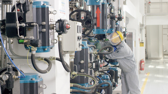 中國節(jié)能集團萬潤公司工人在生產(chǎn)車間作業(yè)。資料照片