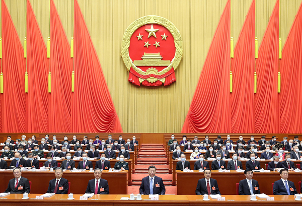 習(xí)近平、李克強(qiáng)、汪洋、王滬寧、趙樂際、韓正、王岐山和大會(huì)主席團(tuán)成員在主席臺(tái)就座。