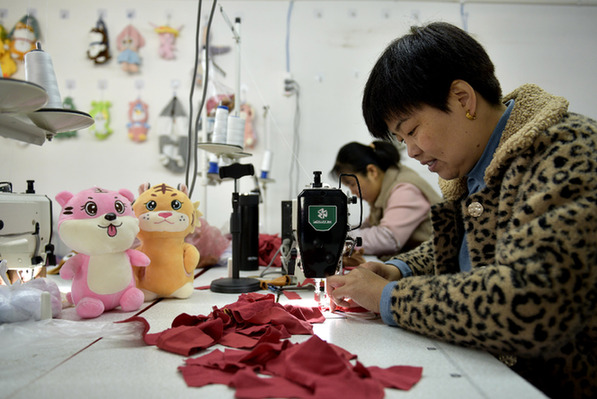 近年來(lái),河北省邢臺(tái)市臨城縣積極拓寬農(nóng)村留守婦女就業(yè)渠道,通過(guò)在鄉(xiāng)村建立“鄉(xiāng)村微工廠”“農(nóng)家微車(chē)間”等,將就業(yè)崗位送到村民家門(mén)口,吸納留守婦女在家門(mén)口靈活就業(yè)。圖為臨城縣鴨鴿營(yíng)鄉(xiāng)西辛安村一家毛絨玩具生產(chǎn)車(chē)間,村民在加工毛絨玩具。(資料照片)