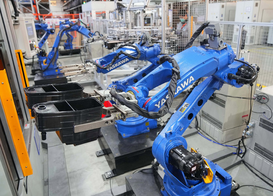 河北廊坊經(jīng)濟(jì)技術(shù)開發(fā)區(qū)一家汽車配件企業(yè)的機(jī)器人在工作中。(資料照片)