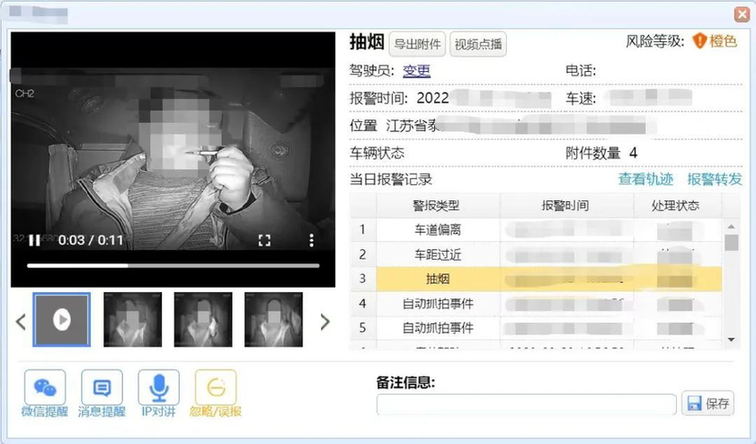 “3月2日,某公司車(chē)輛行駛在安徽無(wú)為縣境內(nèi)時(shí),駕駛員邊開(kāi)車(chē)邊抽煙”……在閔行區(qū)“危運(yùn)客運(yùn)”企業(yè)監(jiān)管平臺(tái)上,記者看到從車(chē)輛視頻監(jiān)控傳到后臺(tái)的一幕。面臨的后果是,該公司扣10分罰款500元,駕駛員扣20分并扣除考核工資60%。