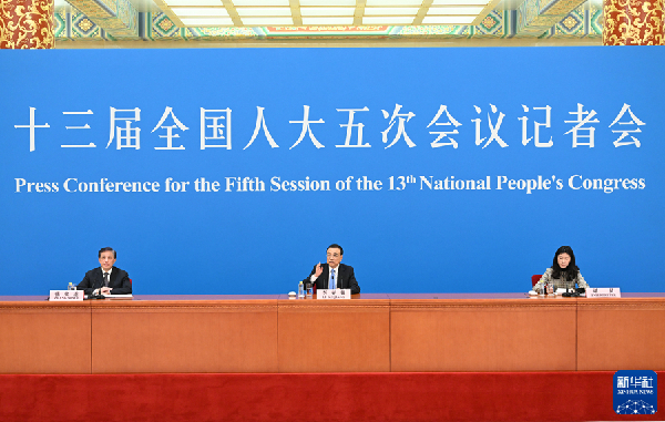3月11日上午,十三屆全國人大五次會議在北京人民大會堂舉行記者會,國務院總理李克強應大會發(fā)言人張業(yè)遂的邀請出席記者會,并回答中外記者提問。新華社記者 李鑫 攝