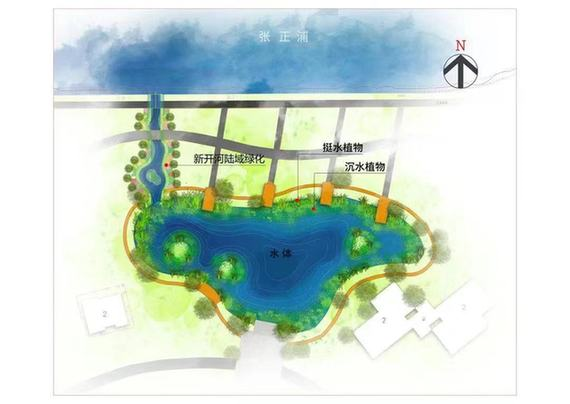另一座公園是在張正浦段河道周邊,將進(jìn)行河道疏浚、岸坡加固、新建及翻新防汛通道,聯(lián)合已建成的天麓、云霞綠地,建成一座親水公園,河水與陸域緊密相連,可濱水漫步,亦可林下穿行。